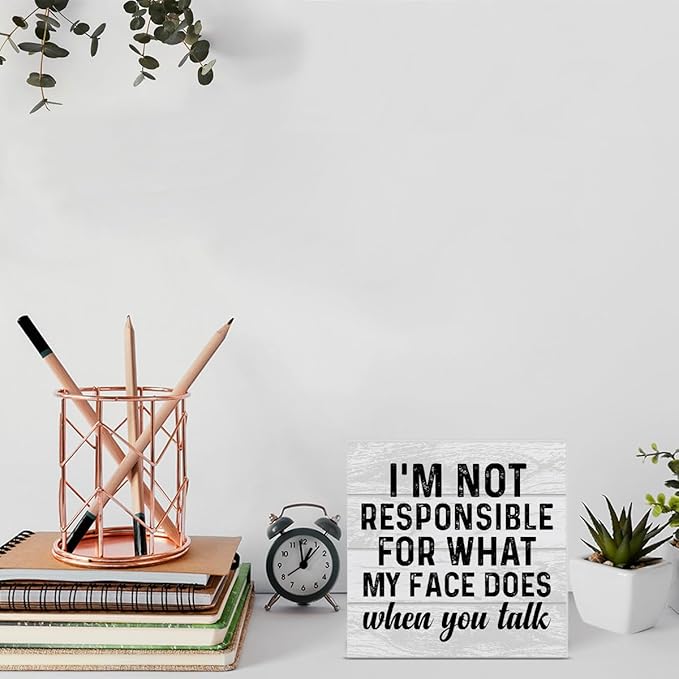 Funny Office Wooden Box Sign Home Decor Office Quote Wood Sign Desk Decoration Coworker Wood Block Plaque Box for Shelf 5 x 5 Inches