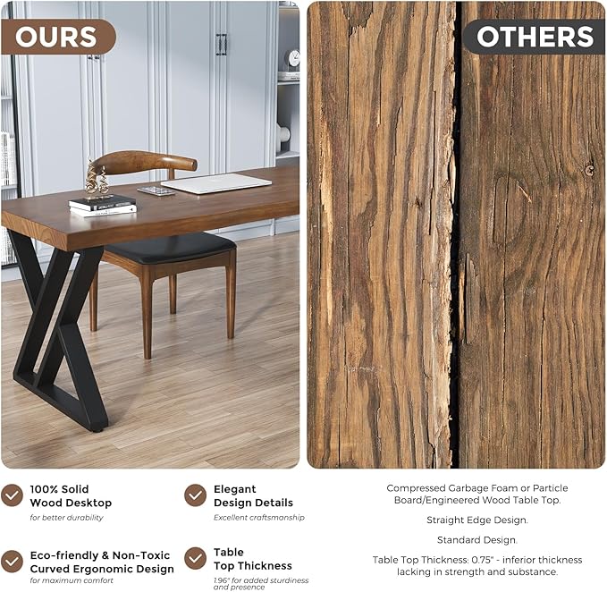 - 【Crafted from Solid Wood and Sturdy Metal】Designed for long-lasting performance, our desk boasts a solid wood top and robust metal legs. The combination of these high-quality materials ensures exceptional durability and stability, even during the most demanding tasks.