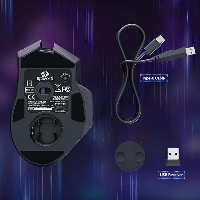 - WIRELESS FOR BOUNDLESS WINNING: Redragon wireless gaming mouse with 2.4Ghz nano receiver offers you the purest mouse moving experience and hype your KDA rise again. The rechargeable wireless mouse has a battery life between 13 hours (RGB on) and 170 hours (RGB off) on a single charge