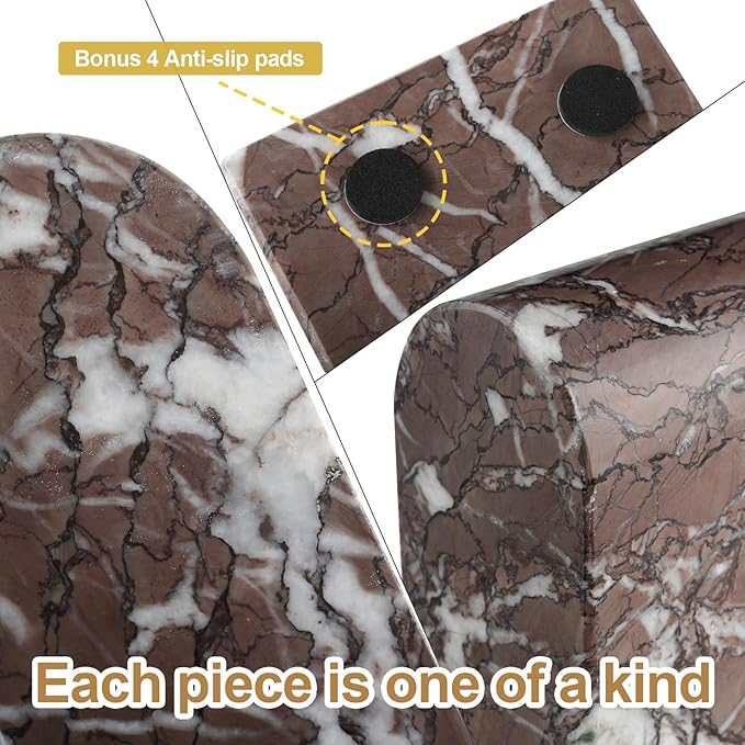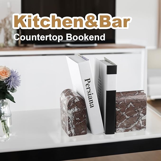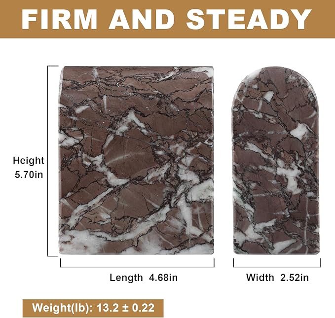 - Sturdy and Solid: This bookends for shelves is weighted 13 lbs and uses natural marble, theyβre strong enough to bookend an entire set of Encyclopedia Britannica. Bonus 4 non-skip feet and unique round arch design support your heavy books more secure in place.