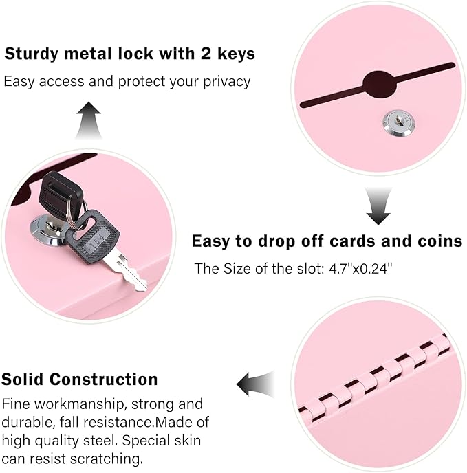 xydled Suggestion Box with Key Lock, Locking Metal Donation Ballot Drop, Comment Prayer Box with Slot for Office, Fundraising, Church, School, Home Use, Pink, 8.7 x 7.1 x 5.9 Inches