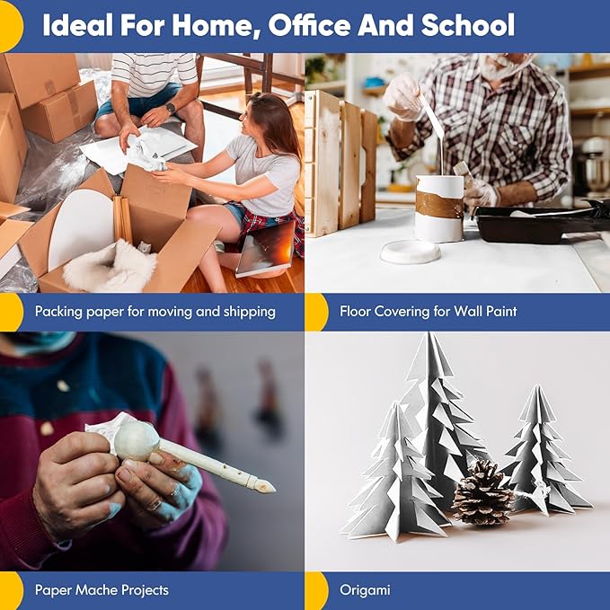 - 【Versatile and Practical】From professional artists to school projects, our white kraft paper roll offers unmatched versatility and functionality, perfect for all your arts and crafts needs. Whether you need it for drawing, painting, gift wrapping, bulletin board displays, bouquet wrapping paper, Christmas, birthday, packing, moving, floor covering, table runners, craft table, easel paper, this painting paper has got you covered, providing endless creative possibilities for both kids and adults.