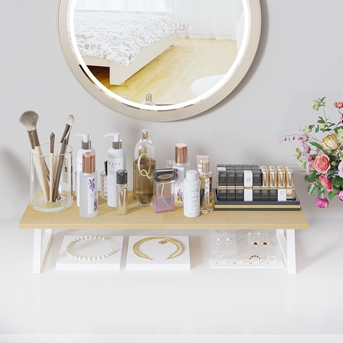 TEAMIX 31.5 inch Dual Monitor Riser - Wide TV Stand for 2 Monitors - Wood & Steel Desktop Riser for Dual Screen Office Desk Organization