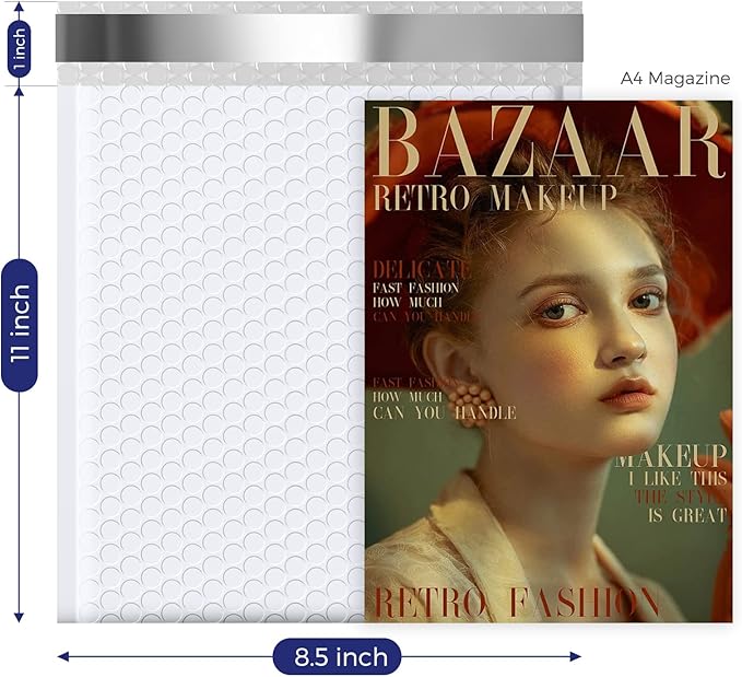 - 100Packs White Bubble Mailers 8.5x12: Our opaque bubble envelopes are a reliable shipping and packaging solution for your retail or online business. The #2 bubble mailers outer size is 8.5x12 inch, while the inner size is 8.5x11 inch.