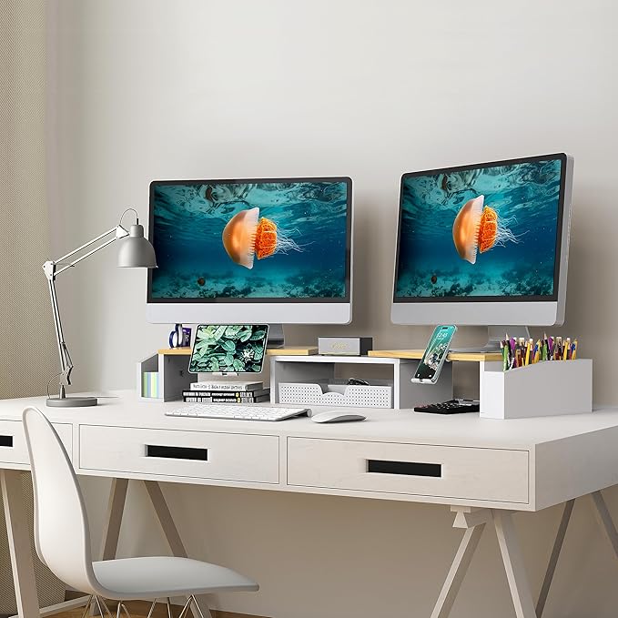 - Ergonomic Monitor Riser - Elevates your monitor or laptop to reduce neck and eye strain for all-day comfort.