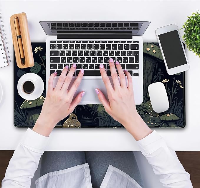 - Cute cartoon mushroom frog desk mat large XXL extended gaming mouse pad, Japan/Korean aesthetic Forest mousepad laptop keyboard and mouse desk pad 31.5x15.75 in (80x40 cm), Thicknesses 3mm. These extra large mouse pads are the perfect gift for gamers. The Best Gamer Gift.