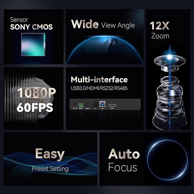- ๐ใ๐๐๐๐๐ ๐๐๐ ๐๐ ๐๐จ๐ง๐๐๐ซ๐๐ง๐๐ ๐๐๐ฆ๐๐ซ๐ใCapture every detail and provide an immersive experience with Tenveo FHD 1080P 60FPS PTZ Conference Room Camera. With its 12X Optical Zoom, 1/2.8'' SONY CMOS Sensor, 2.38 megapixel Lens and 90ยฐ FOV, you can now capture stunningly detailed visuals that bring your virtual meetings or events to life. The wide-angle lens ensures that no participant is left out of the frame, while the 12X optical zoom allows for close-ups of key speakers and presenters.