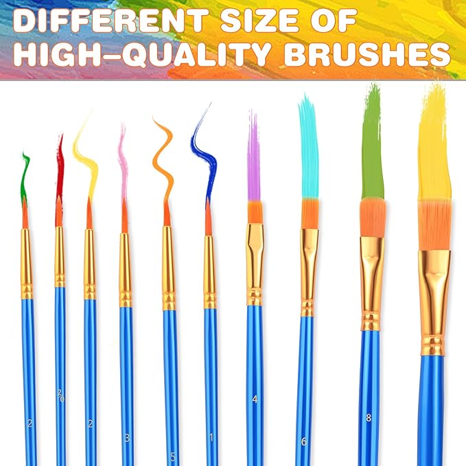- 【 Various sizes of art brushes 】: Independently packaged brushes, 10 multi-functional brushes of different sizes, strong anti shedding bristles, rustproof nickel ferrules, and sturdy wooden handles. You can use a paintbrush to describe details.
