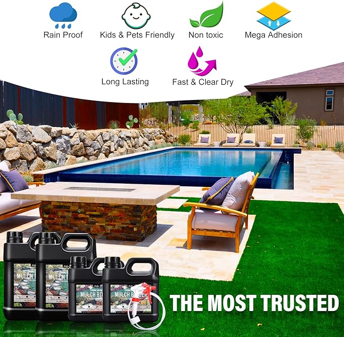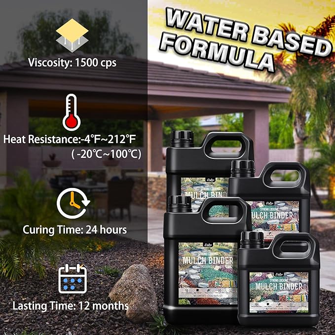 - 100% SATISFACTION GUARANTEE - Mulches glue is a cost-effective choice for landscaping projects. Simplify your life and eliminate the need for frequent sweeping and landscape maintenance! Feel free to contact us if you are dissatisfied with our mulches adhesive for any reason.