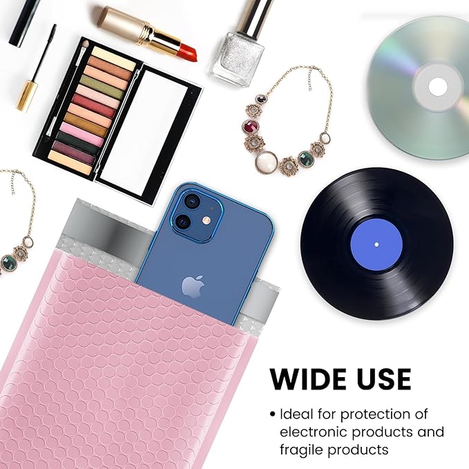 - Perfect Size Bubble Mailer: The poly Sakura Pink bubble mailers outer size is 6x10 inch, while the inner size is 6x9 inch. It is very suitable to transport for jewelry, makeup, cards, phone case, Lips, photos, handcraft and more.