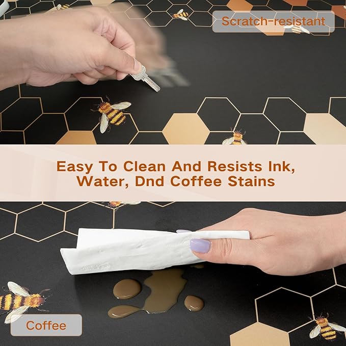 - Aesthetic Desktop Decoration: The desk cover mat is paired with warm toned honeycomb and yellow black bees, the color contrast is vivid, and the honeycomb frame and bees add liveliness; Visually impactful, evoking a sense of familiarity with nature and diligence, resulting in overall harmony and vitality