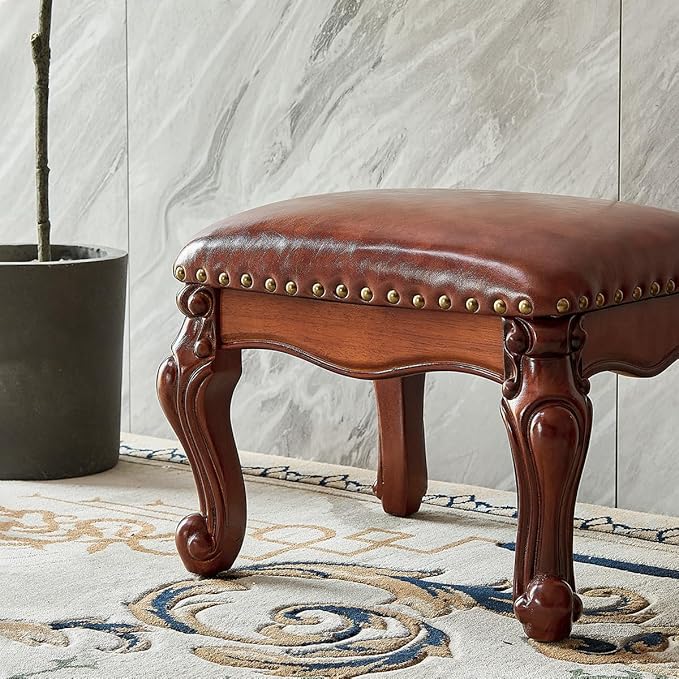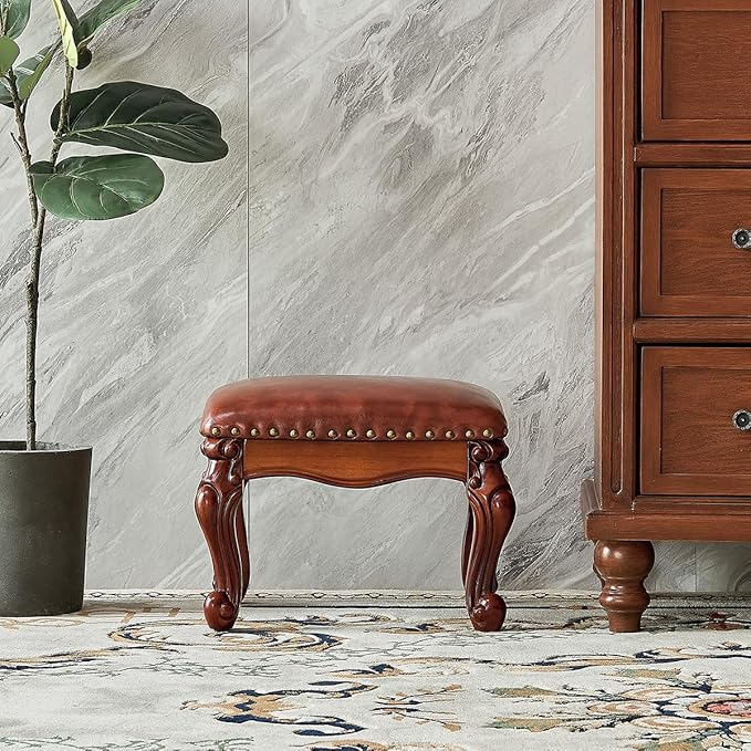 - 【Water-based Paint】Ottoman using human-friendly water-based paint coating, non-toxic and odorless, each foot has a hand-carved carved design, exquisite and delicate, idea as a gift for your family friends