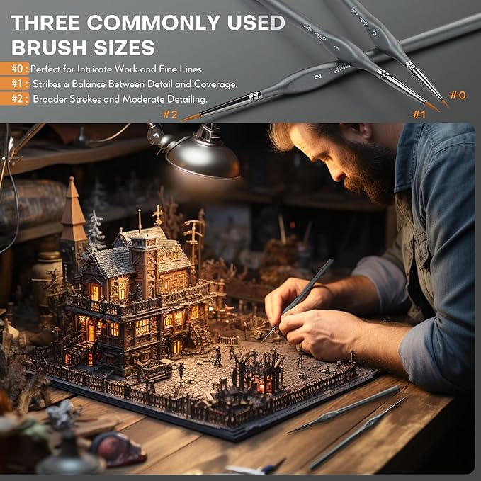 - 【suitable FOR PRECISION PAINTING】Miniature brushes are perfect for miniatures figurines, ultra fine detail painting, army figures. You can use detail brush set as paint by number brushes, hobby paint brushes, plastic model paint brushes,express yourself through any creation and craft! The mini paintbrushes are perfect present for your loved one or a treat to yourself !
