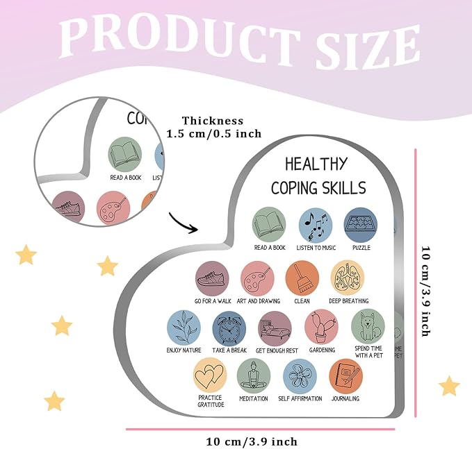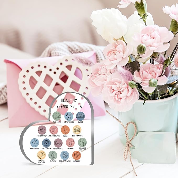 - 【Healthy Coping Skills Decor】This acrylic heart-shaped gift is printed with many mental health and subject knowledge content, which can help you identify your emotions and learn more. Combining the warmest colors with super cute and adorable patterns, it gently brings positive energy, encourages and inspires the soul
