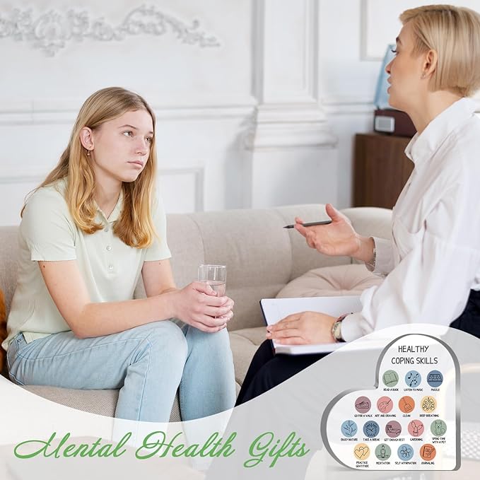 Therapy Office Decor, Anxiety Healthy Coping Skills Mental Health Decorations for Social Worker Classroom School Counseling Therapist Supplies Educational Acrylic Heart Art Decor
