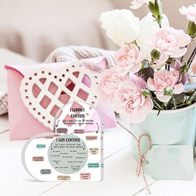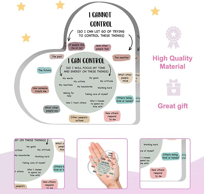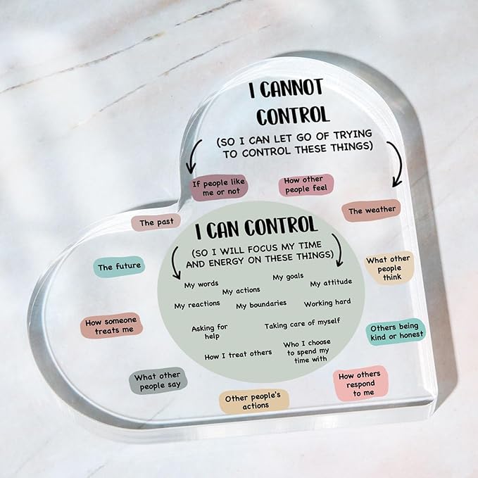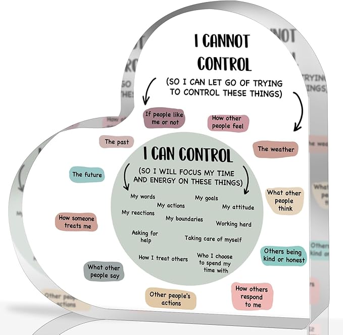 Mental Health Decor, Decor for Therapy Office School Counselor Sign Things I Can Control Acrylic Heart Gifts, Therapist Office Art Decorations for Therapist Office Living Room Bedroom Desktop Gift