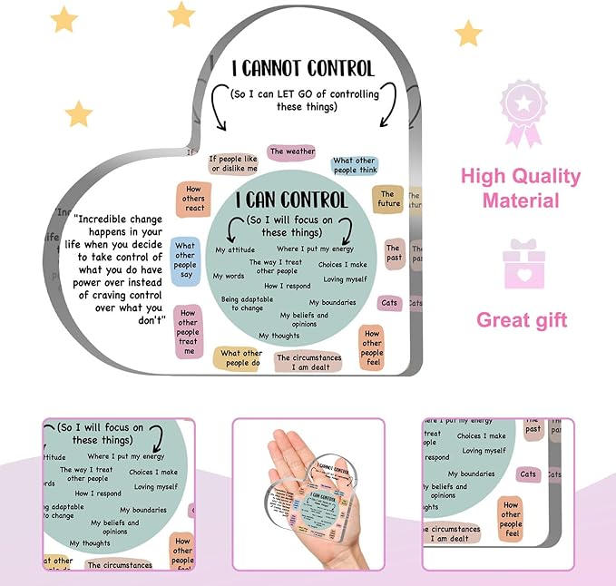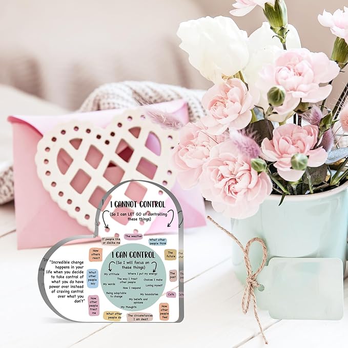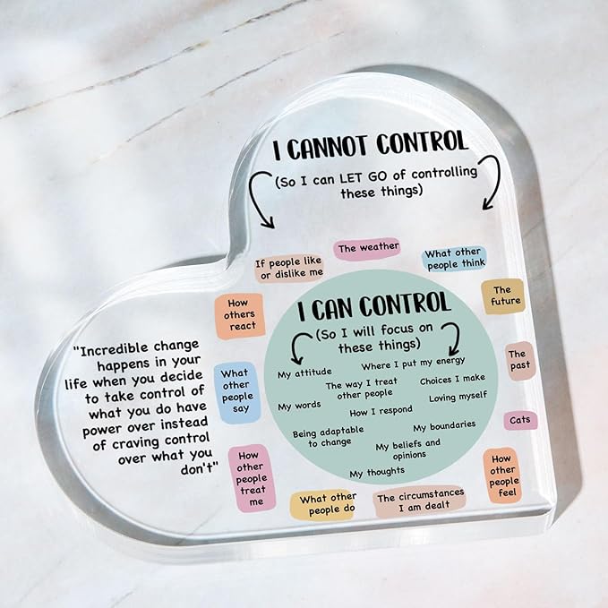 Mental Health Things I Can Control Decor, Mindfulness Decor for Therapy Office Acrylic Heart Gifts, School Counselor Sign Therapist Office Art Decorations for Therapist Office Living Room Bedroom Gift