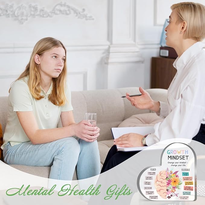 Growth Mindset Decor, Mental Health Therapy Office School Art Educational Challenging Thoughts Affirmation Decorations Positive Sayings Inspirational Gifts Acrylic Heart Inspirational Gift for Teacher