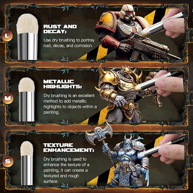 - 【Goat Hair Dry Brushes】Miniature dry brush features rust proof ferrule which encases dense, semi-stiff, and springy goat bristles, as well as a slightly domed shape. Dry brush set are durable and resistant to deformation or shedding, excellent comfort that can be controlled firmly.