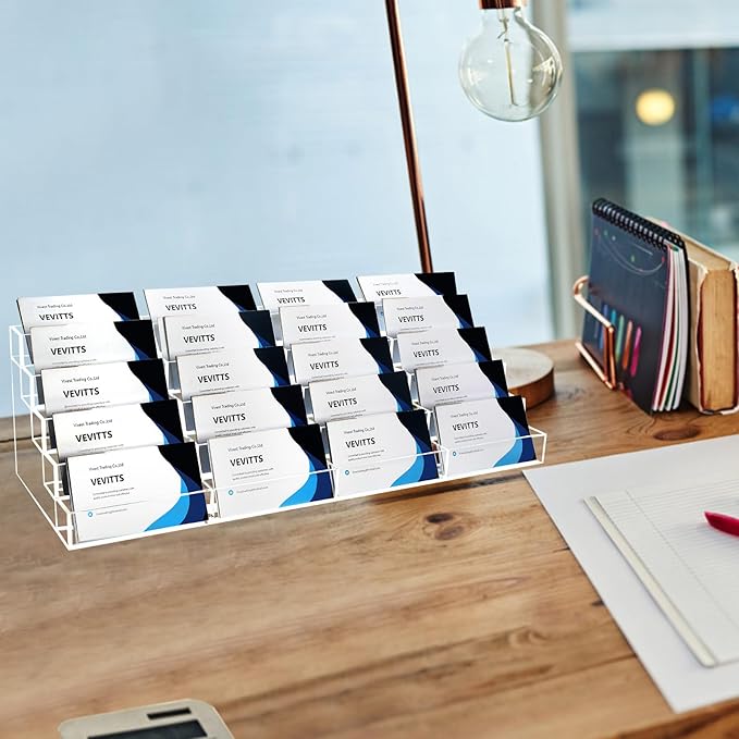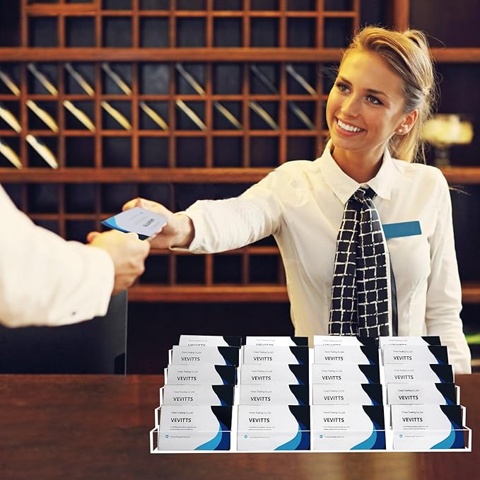 - Convenient and Effective Design: card holder stand is designed into 5 tiers and 20 slots in total, convenient for you to put or take out business cards; Clear color design make it easy to find the business card you need, make your business life convenient and effective.
