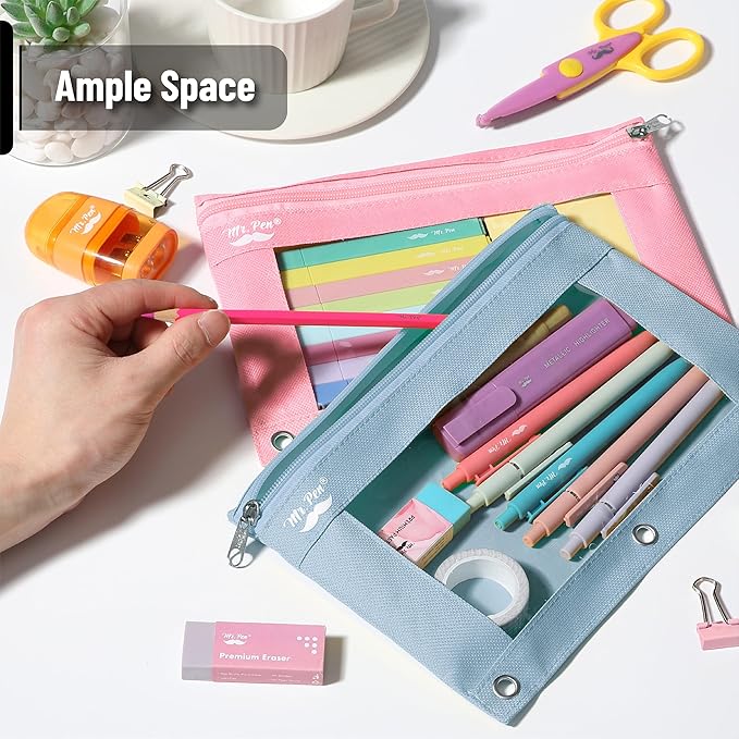 Mr. Pen- Pencil Pouch, 2 Pack, Blue and Pink Pencil Pouches, Pencil Pouch for 3 Ring Binder Pencil Pouch, Pencil Cases, Flat Pencil Case for Binder Pouch, Zipper Pencil Pouch, 3 Ring Binder Pouch