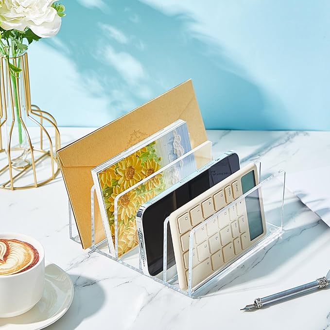 Geyoga 2 Pcs Acrylic File Holder Clear Mail Folder Organizer 5 Sections Multifunction Desktop Storage Letter Sorter Envelope Vertical Dividers for Office, Home, Desk Organization