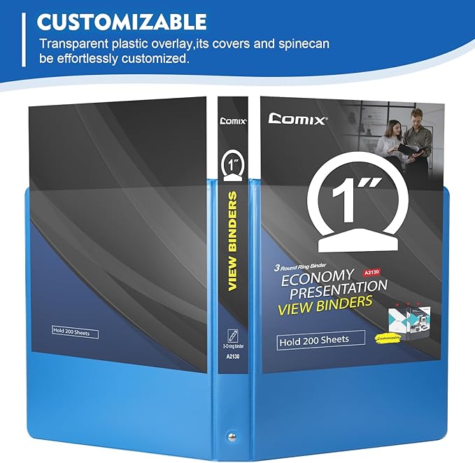 - Customizable:View binder with a Clear View poly overlay allows you to customize the spine and both covers.