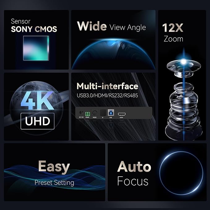 - ๐ใ๐๐ ๐๐๐ ๐๐๐ ๐๐จ๐ง๐๐๐ซ๐๐ง๐๐ ๐๐๐ฆ๐๐ซ๐ใCapture every detail and provide an immersive experience with Tenveo UHD 4K PTZ Conference Room Camera. With its exceptional 4K resolution, 12X Optical Zoom, 1/2.8'' CMOS Sensor, 8.29 megapixel Lens and 90ยฐ FOV, you can now capture stunningly detailed visuals that bring your virtual meetings or events to life. The wide-angle lens ensures that no participant is left out of the frame, while the 12X Zoom allows for close-ups of key speakers and presenters.