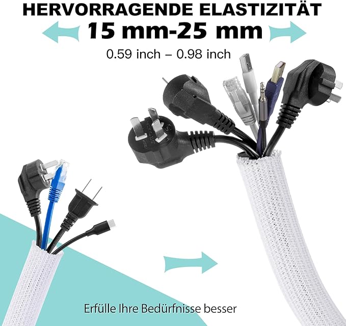- 【Wire Cover for Many Cable +Easy to cut 】The cable tube can be easily cut with scissors. Length: 20ft. Diameter: 1inch. More cables can be held. Especially suitable for corners. It is recommended to cut the cutting position with a fire after cutting to prevent spreading
