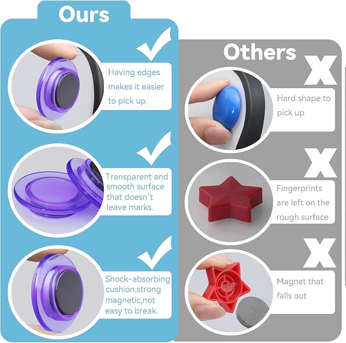 - 【Durability】Craft magnets are typically made from durable Plastic and quality magnet that can withstand the wear and tear of daily use. These whiteboard magnets are designed to be personalized, making them a popular choice for homes and offices. Our small magnets for crafts has strong demagnetization, corrosion and oxidation resistance, making them the most practical tiny magnets on the market. Thanks to the use of ceramic, the super strong magnet are rust-proof.