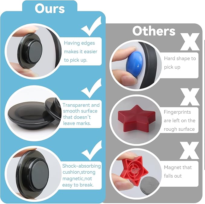 - 【Durability】Craft magnets are typically made from durable Plastic and quality magnet that can withstand the wear and tear of daily use. These whiteboard magnets are designed to be personalized, making them a popular choice for homes and offices. Our small magnets for crafts has strong demagnetization, corrosion and oxidation resistance, making them the most practical tiny magnets on the market. Thanks to the use of ceramic, the super strong magnet are rust-proof.