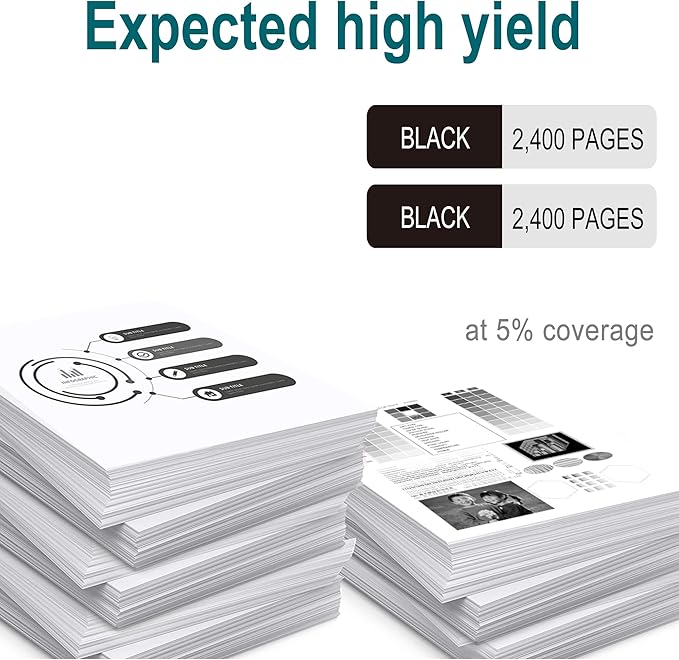 - High Page Yield: Up to 2400 pages per black toner cartridge (at 5% coverage may vary by type of use)