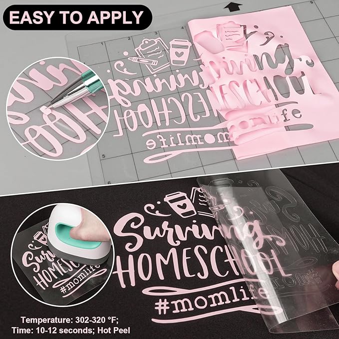 - ✂️EASY TO APPLY: Just use craft cutter and a home iron to get the job done. Apply for approximately 10-12 seconds at 302-320 °F (150-160 °C) and about 10 LBS of pressure. Be sure to cold peel.