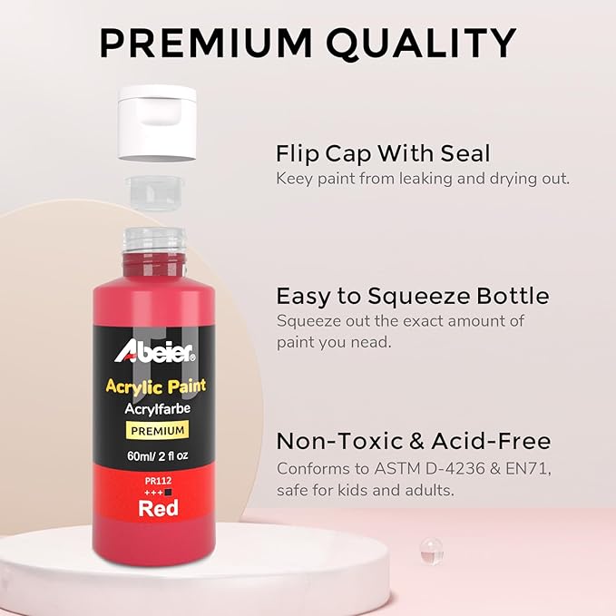 ABEIER Acrylic Paint Set, 56 Colors (2oz/60ml), Matte Finish, Waterproof, Rich Pigments, Non-Toxic Paints for Painting on Canvas Crafts Wood Ceramic, Fabric Ideal for Beginners and Students
