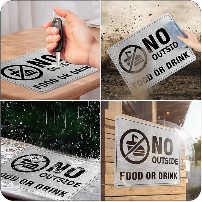- Durable metal sign: Heavy duty aluminum construction ensures long-lasting use of this no outside food sign, it is waterproof, rust free, and not easy to bend or scratch.