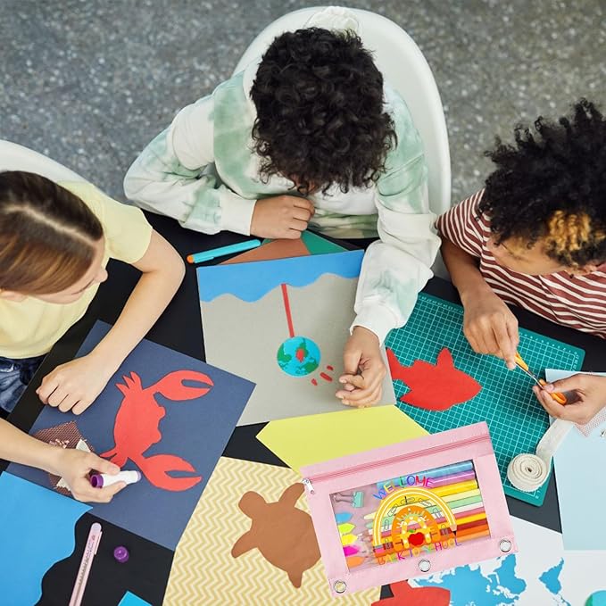 - FASHIONABLE CUTE CARTOON PATTERN: The surface of the pencil bag is affixed with cute pencil ruler cartoon patterns and "Welcome Back To School", which adds fun to students, stimulates their interest in learning, and can also become a highlight in the schoolbag