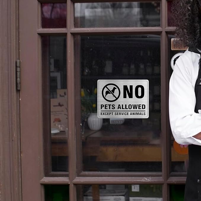 No Pets Allowed Aluminum Silver 8 x 6 Inches Self-Adhesive Waterproof Metal Door Wall Sign for Business Offices 2 Pack