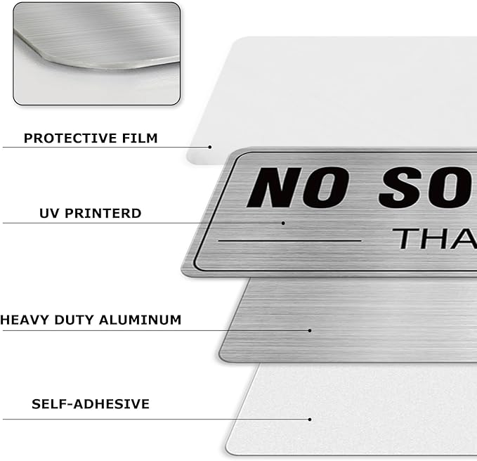 No Soliciting Sign Aluminum Silver 9 x 3 Inches Self-Adhesive Waterproof Metal Door Wall Sign for Business Houses 4 Pack