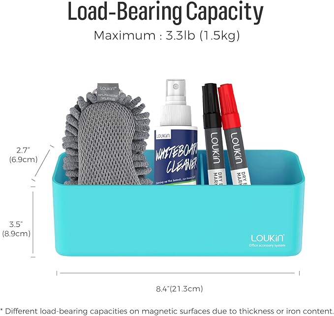 - SUPER LOAD BEARING: Secure magnetic storage organizer for whiteboards with a maximum loadbearing of capacity 3.3 lb (1.5 kg).