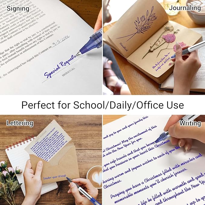 - Smooth Writing: These 0.5mm liquid ink roller ball pens has a built-in precision ink regulator and a tungsten carbide nib, the precise nib structure and technology provide continuous ink output, smooth ink flow and not easy to break, which can making writing a breeze. These smooth writing blue gel pens are suitable for note-taking and diary writing