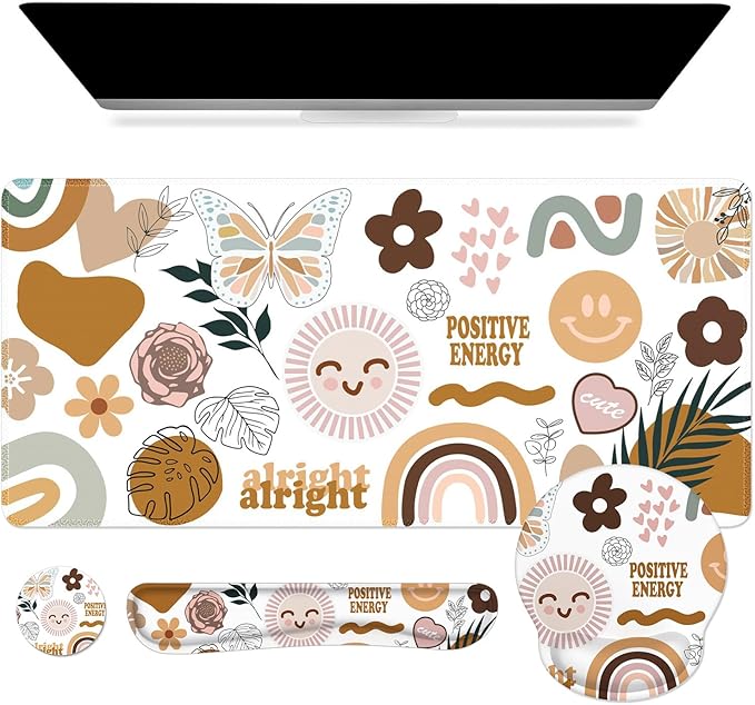 - Widely Usage: This combo can be used in many ways. The desk mats on top of desks can be used as a great desk organizer making your desktop neat. As a keyboard and mouse pad for you to gaming and work. As a home and office decor with a beautiful pattern