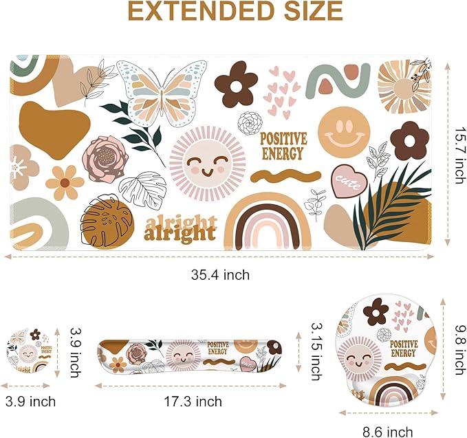 - Large Mouse Pad Size: Extended mouse pad:35.4" x 15.7",wrist rest for computer keyboard:17.32" x 3.15" x 0.98",wrist rest for mouse:8.66" x 9.84" x 0.86",Coaster:3.93" x 3.93"