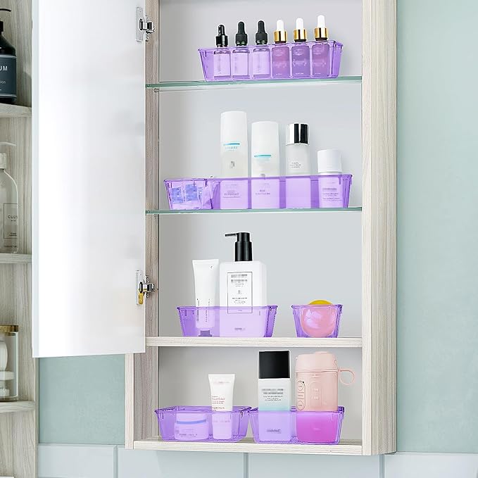 WOWBOX 25 PCS Plastic Drawer Organizer Set, Desk Drawer Divider Organizers and Storage Bins for Makeup, Jewelry, Gadgets for Kitchen, Bedroom, Bathroom, Office, Clear Purple