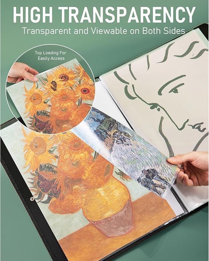 - Black Inner Sheets: The art portfolio case comes with black inner sheet for each sleeves, which can make a great vision if your picture or painting smaller than the transparent sleeves. Not only make your doc non-wrinkle but also easily to remove or insert files without barriers