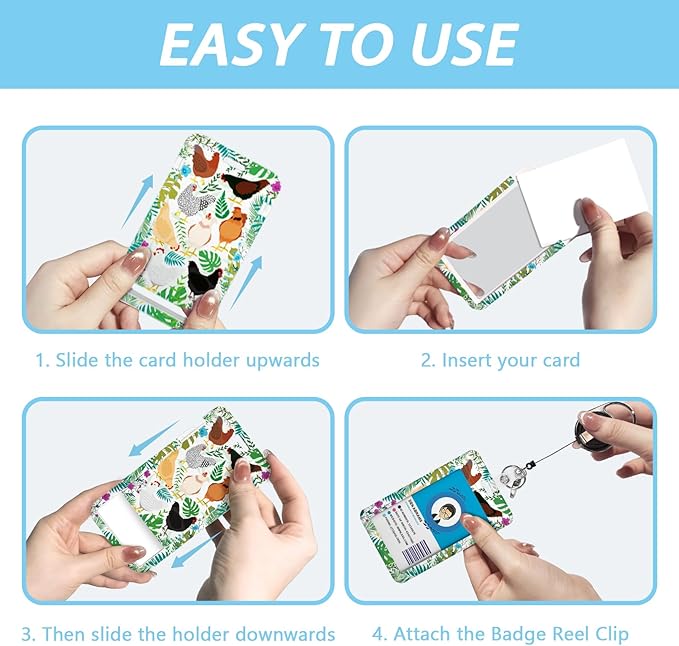 - Novelty Badge Reel: This cute badge reel is designed with funny chickens arts. The cute and interesting badge reel will always bring more happiness and fun to your life. The set includes a detachable lanyard, heavy duty badge reel, and card holder, great for personalizing your work accessories