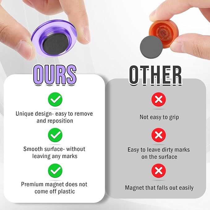 - 【Light Weight】Whiteboard magnets are made of high-quality plastic outer shell and durable magnets inside. These refrigerator magnets are lightweight, making them easy to carry. Magnets fridge are small so that they won't take up much space on your whiteboard.