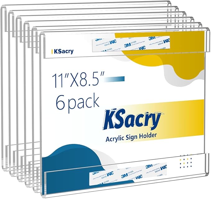 6 Pcs Acrylic Sign Holder 11 x 8.5, Horizontal Wall Mount Sign Holders with 3M Adhesive, Clear Plastic Frames Paper Display Sign Holders for Office, Home, Store, Restaurant - No Drilling