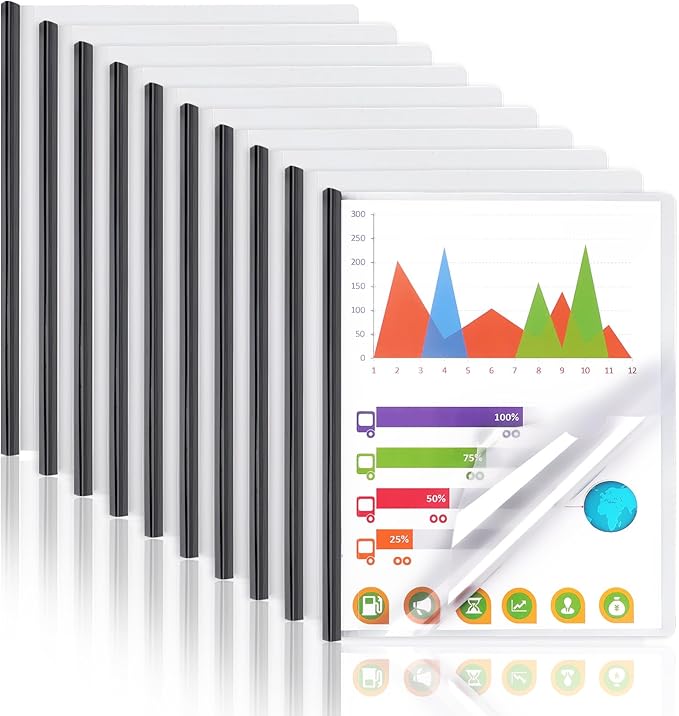 - Package Includes: A set of 10 clear report covers with sliding bar. These folders are the perfect choice for organizing and presenting your work resume, school projects, presentations, documents, proposals, and portfolios