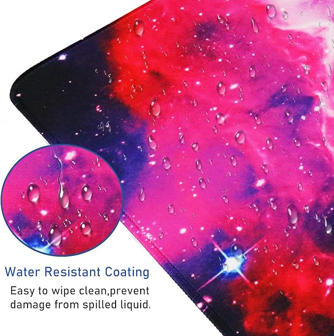 Large Extended Gaming Mouse Pad with Stitched Edges, (31.5X15.7In) Durable Non-Slip Natural Rubber Base, Waterproof Computer Keyboard Pad Mat for Esports Pros/Gamer/Desktop/Office/Home, Galactic Blue