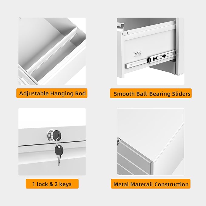 - 【Muti-Functional】: White file cabinet with a slender rectangular silhouette with a clean white finish, ideal size of save more ground space while ensuring plenty of storage, just place vertical file cabinets beside the desk, sofa to keeping your items tidy and within reach is a wise choice for limited space